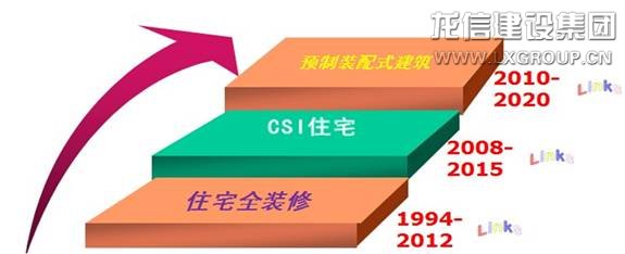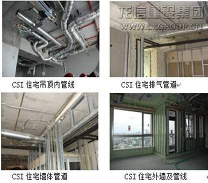 CSI住宅是國家重點推進的住宅產業化技術。CSI是China Skelton-Infill 的縮寫,直觀理解也即“中國的結構支撐體-填充體住宅體系”。CSI住宅內部的填充體具有可變性,部品可以通過標準化、系列化,實現工廠化生產,以減少現場作業,確保產品質量。龍信集團參與了《CSI住宅建設技術導則》的編制工作,同時在自己開發的小區內進行了CSI構造房的研究工作。