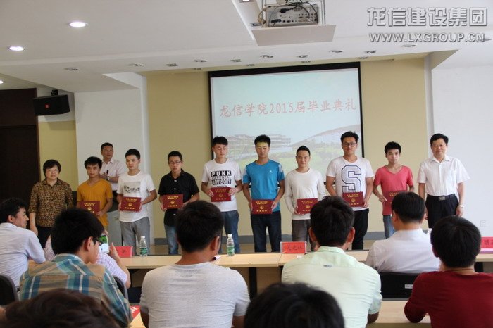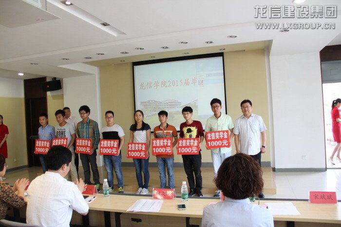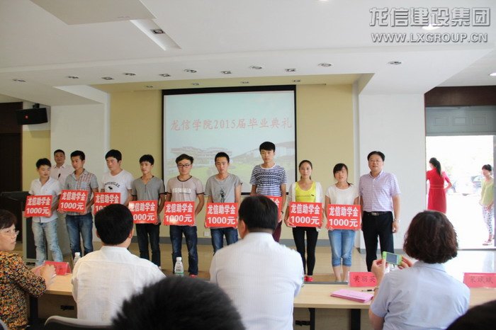 何總首先宣讀了龍信集團獎學金、助學金表彰文件,并為薛貴仁等10名龍信獎學金獲得者和陳坤等10名龍信助學金獲得者頒獎。吳書記和龍信卞總為畢業生代表頒發畢業證書。
