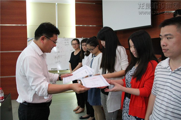 課程結束后,龍信建設集團有限公司副總經理何曉軍為項目做了總結,他首先感謝了為這十期準備付出了巨大精力的盛世驕陽有限公司及7位授課老師,同時感謝主辦方的領導們,對這次活動給予的人力、物力、財力的支持,并對陪伴整個培訓項目的各個分子公司的學習代表們表示最衷心的感謝。何總還向全員介紹了公司下半年的培訓計劃,公司將通過大學生入職培訓、一級建造師考前培訓、卓越績效管理評價標準輔導、經營層戰略總裁班、中高層管理能力研修班等提供公司各階層的職業素養與能力,以外公司還將把內訓師團隊建設納入未來龍信培訓發展的重大項目中,促使龍信集團培訓體系的建立健全。