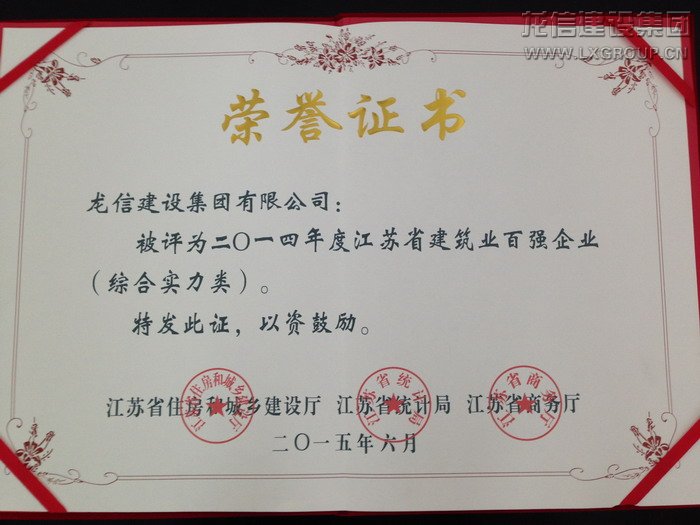 6月11日,江蘇省政府召開建筑業創新發展暨2014年度“百強企業”發布會,會議回顧總結了2014年全省建筑業發展工作,發布2014年度全省建筑業“百強企業”名單,龍信集團獲綜合實力百強榜第六位。副省長張雷出席會議并講話。省政府副秘書長楊根平,省住房城鄉建設廳廳長周嵐,副廳長顧小平,廳副巡視員紀迅、省統計局、商務廳以及獲獎百強企業領導出席會議。周嵐廳長主持會議。