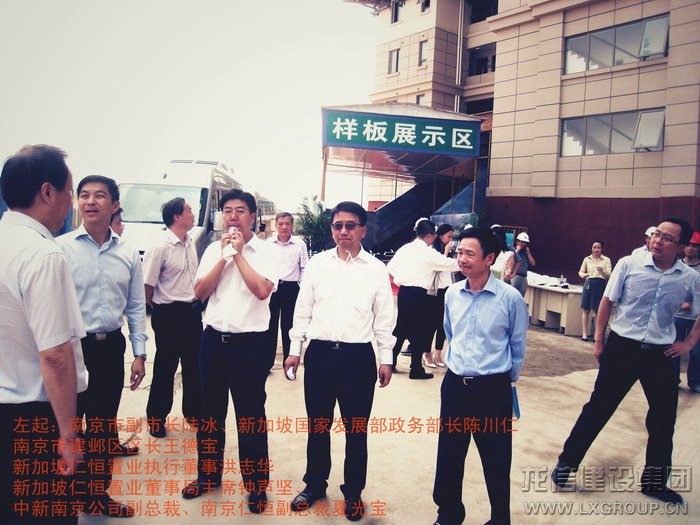 2013年8月16日上午,中、新領導考察團蒞臨江心洲在建項目南京生態科技島參觀考察,考察團由新加坡領導人力部代部長兼國家發展部政務部長陳川仁、駐華大使羅嘉良、駐滬領事館總領事王首毅、駐滬領事館領事陳櫘伊、國際企業發展局中國華東區副司長王俐恩、仁恒置業董事局主席鐘聲堅、勝科城鎮發展有限公司總裁趙萬成、仁恒置業執行董事執行副總裁洪志華,中方南京市副市長陸冰、南京市建鄴區區長王德寶、中新南京公司副總裁南京仁恒副總裁夏光寶、馮亞軍、張俊、王杰等其他領導組成,龍信建設集團江心洲項目經理范建剛全程陪同。