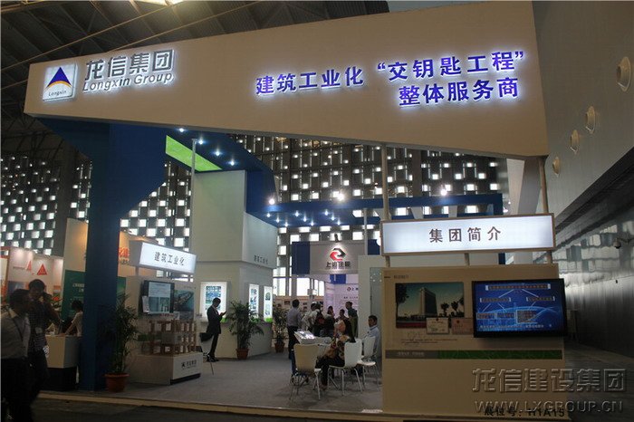 龍信集團展位在1號門入口處的顯著位置,展位面積90平米,劃分為集團介紹、建筑工業(yè)化技術體系、PC工廠預制及安裝、代表工程、社區(qū)養(yǎng)老共5個板塊區(qū)域,重點介紹了公司的總體概況、研發(fā)實力、技術體系、“交鑰匙工程”解決方案、PC工廠規(guī)劃實施、構件預制、構件吊裝、CSI住宅與全裝修技術、預制裝配式代表項目、全裝修代表項目、“候鳥式”社區(qū)養(yǎng)老模式等內容。